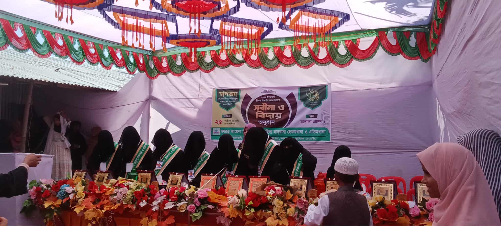 অনুষ্ঠানের শেষ পর্যায়ে খুদে হাফেজাদের হাতে সম্মাননা স্মারক তুলে দেওয়া হয় এবং পরে এক মনোমুগ্ধকর গাড়িবহর নিয়ে পুরো এলাকায় আনন্দ শোভাযাত্রা অনুষ্ঠিত হয়। পরিচ্ছন্ন পরিবেশ, উচ্ছ্বসিত অভিভাবক, শিক্ষক ও ছাত্রীদের অংশগ্রহণে পুরো অনুষ্ঠানটি পরিণত হয় এক অনন্য মিলনমেলা ও ধর্মীয় উৎসবের আবহে।