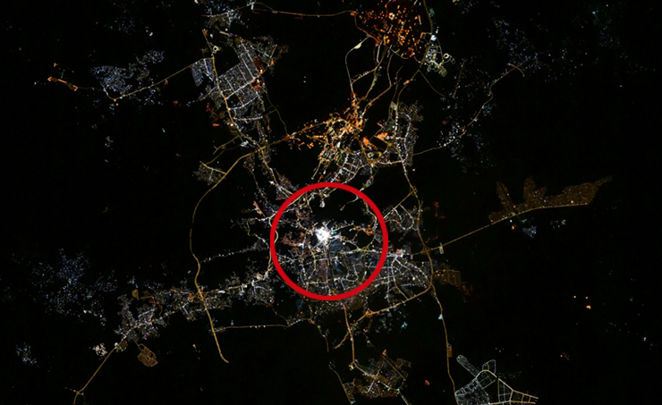 পৃথিবী থেকে প্রায় ৪০০ কিলোমিটার ওপরের কক্ষপথ থেকে তোলা এক বিস্ময়কর ছবিতে জ্বলজ্বল করছে সৌদি আরবের পবিত্র মক্কা নগর। যুক্তরাষ্ট্রের মহাকাশ গবেষণা সংস্থা নাসার নভোচারী ডন পেটিট তাঁর মহাকাশযান থেকে রাতের বেলায় তোলা সেই ছবি নিজের এক্স অ্যাকাউন্টে প্রকাশ করলে তা সঙ্গে সঙ্গে বিশ্বজুড়ে আলোড়ন তোলে।
