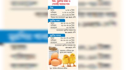 ডিম, মুরগির বাচ্চা ও খাদ্যের দাম বাংলাদেশেই বেশিঢাকার খুচরা দোকান থেকে এখন এক ডজন (১২টি) ডিম কিনতে লাগছে প্রায় ১৫০ টাকা। এক ...০৮/০৭/২০২৪