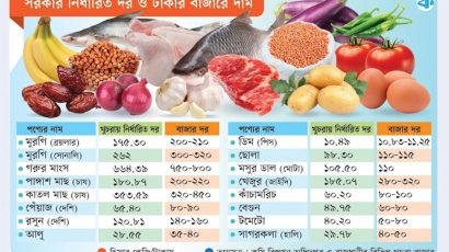 সরকারি দামে কেউ বিক্রি করে না পণ্যবাজার নিয়ন্ত্রণে রাখতে মাছ, মাংসসহ নিত্যপ্রয়োজনীয় ২৯টি পণ্যের দাম নির্ধারণ করে দিয়েছে সরকার। গত শুক্রবার ...১৮/০৩/২০২৪
